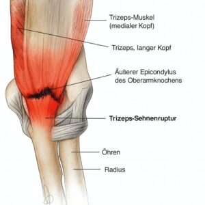 - Eine Trizepssehnenruptur erfordert häufig eine Operation, um Kraft und Stabilität wiederherzustellen.